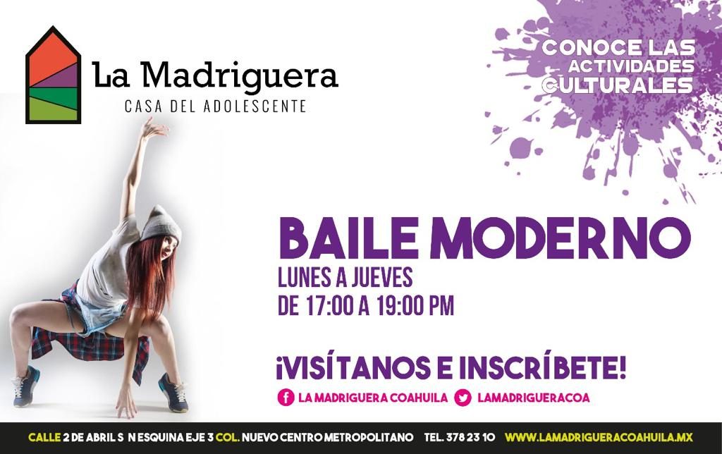 Saltillo.- La Madriguera continúa trabajando en el tema cultural, y debido a la demanda de usuarios en la Casa del Adolescente y a la necesidad de otorgarles un servicio integral, se implementó una nueva actividad denominada “Baile moderno”.