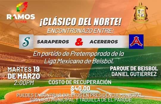 Este próximo martes, en las instalaciones del parque de béisbol Daniel Gutiérrez de Ramos Arizpe, se llevará a cabo una edición más del Clásico del Norte entre los Saraperos de Saltillo y los Acereros de Monclova.