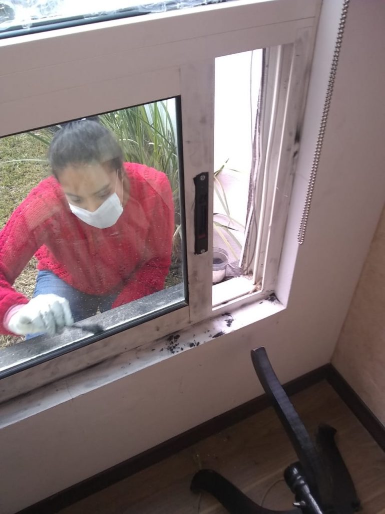 Estrujándola, la trasladaron a la sala en donde la amarraron de manos y pies con las agujetas de sus zapatos y su cinturón, para después tirarla al suelo colocándole un trapo en la boca y encima una cortina.