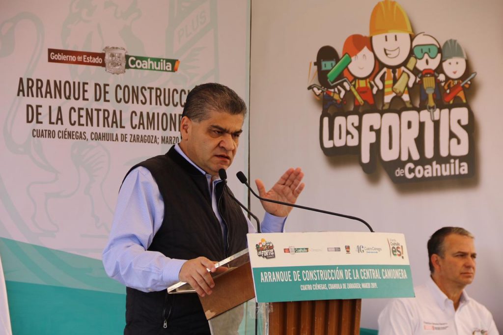 Cuatro Ciénegas, Coah.- El gobernador Miguel Ángel Riquelme Solís arrancó este miércoles los trabajos de construcción de lo que será la central camionera de Cuatro Ciénegas, una obra que alcanzará los 10 millones de pesos y que vendrá a mejorar los servicios de transporte y las comunicaciones en el municipio.