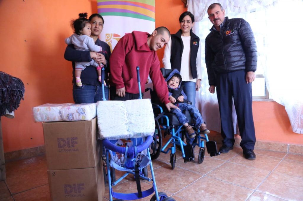 Los pequeños Carlitos y América recibieron sillas de ruedas activas y ajustables, en respuesta a la solicitud que sus padres hicieron llegar a la señora Marcela Gorgón, Presidenta Honoraria del DIF Coahuila, para apoyar la movilidad, comodidad y, en definitiva, la calidad de vida de los pequeños.