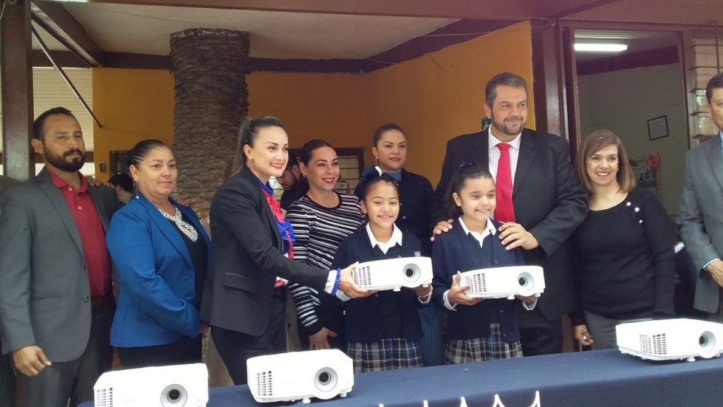 Cinco cañones de alta definición, fueron los que las autoridades municipales entregaron en esta escuela primaria Benito Juárez, con el objetivo de que los alumnos pudieran contar con este sistema de apoyo para hacer sus clases más dinámicas.