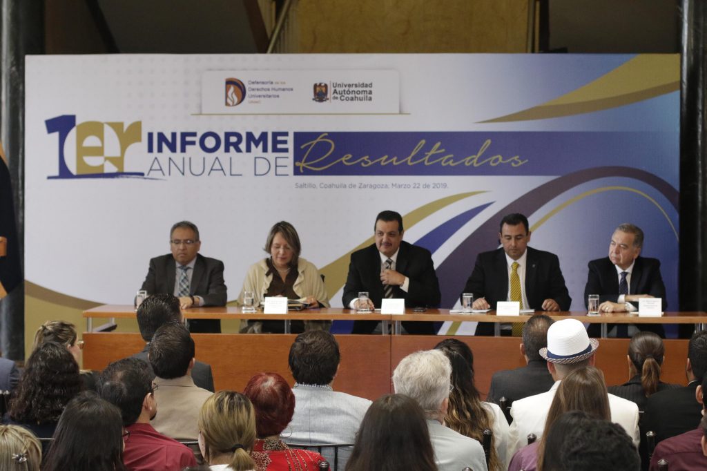 Este viernes el titular de la Defensoría de los Derechos Humanos Universitarios de la Universidad Autónoma de Coahuila, Alfonso Yánez Arreola, rindió su primer informe anual de actividades, la dependencia tiene como objetivo conservar y hacer cumplir el orden jurídico universitario, desterrar la arbitrariedad y los abusos de autoridad.