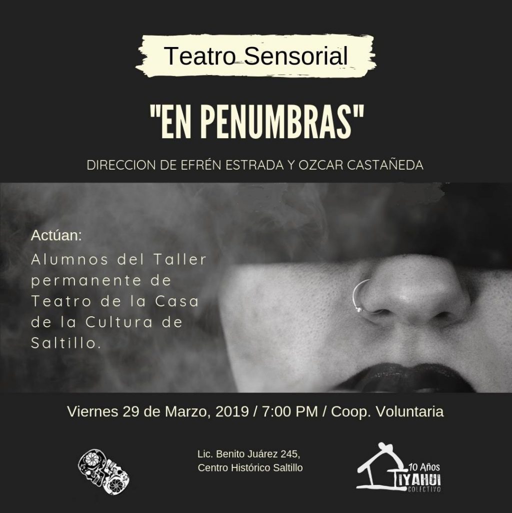 Aromas, sonidos, sabores y texturas harán de este proyecto una experiencia envolvente para los asistentes que podrán asistir a Tiyahui y otorgar una cooperación voluntaria para ser testigos de «En Penumbras», a partir de las 7:00 de la tarde.