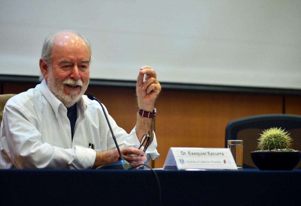Previo a su conferencia, en el auditorio de la Unidad de Posgrado, Ezcurra, también integrante de la Sociedad Científica Mexicana de Ecología A.C., resaltó que el concepto de sustentabilidad inicialmente fue desarrollado por un grupo de ecólogos, pensando en temas ambientales, pero ahora se ha extendido y muchas disciplinas lo han adoptado.
