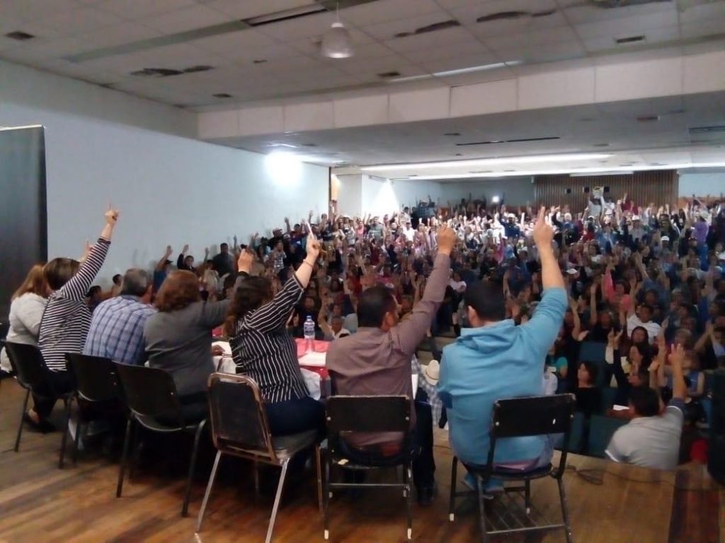 «Del total de los 774 que asistimos porque muchos se quedaron en las guardias, fue el 98.5 (por ciento) a favor de que continuáramos con nuestro movimiento y como el 1.5 se abstuvo y el 1 por ciento fue en contra», compartió en entrevista con medios, Gustavo Lara, secretario general de este movimiento gremial.