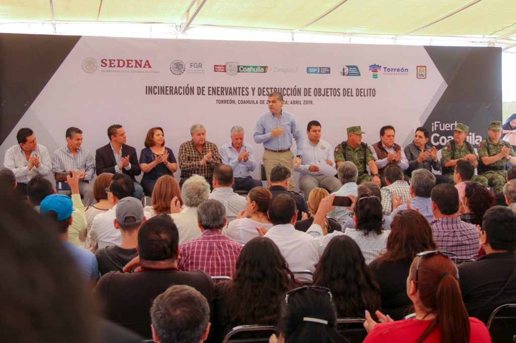Desde su administración se han incinerado en Coahuila 57 mil 035.78 kilos de mariguana, 33.21 kilos de clorhidrato de cocaína, 20.87 kilos de heroína, 113.08 de metanfetaminas y 25 mil 630.32 litros de alcohol, con un valor de mil 988,166 millones de pesos, que podrían costar en el mercado negro esta droga y los objetos del delito.
