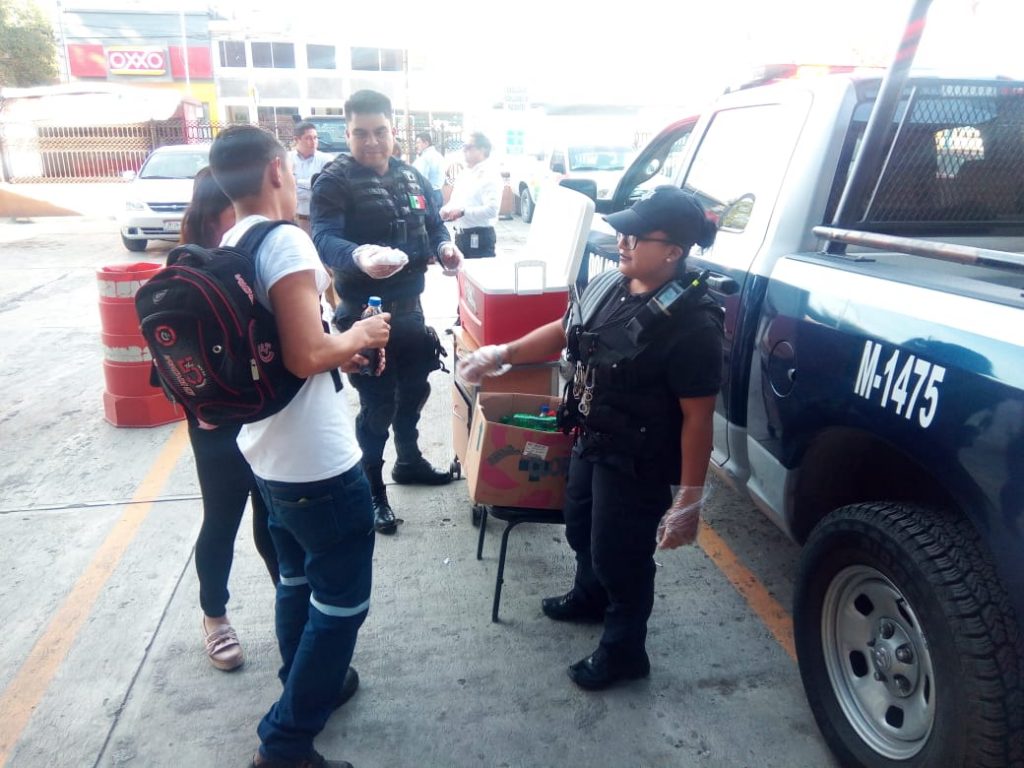 Los oficiales llevaron a cabo la entrega de refrigerios a los familiares de los pacientes internados en los hospitales del Niño, General y Universitario, así como en las clínicas 1 y 2 del IMSS.