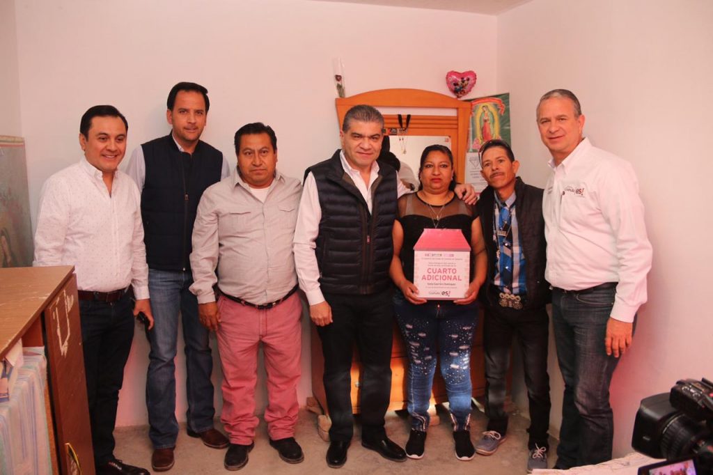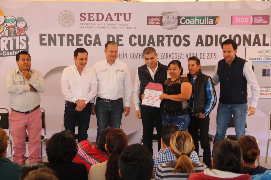 El gobernador Miguel Ángel Riquelme Solís entregó en la Colonia Ampliación Valle La Rosita 90 cuartos adicionales a igual número de familias, que se beneficiaron con este programa y que se suman a los más de 900 cuartos que actualmente se están construyendo en el estado.
