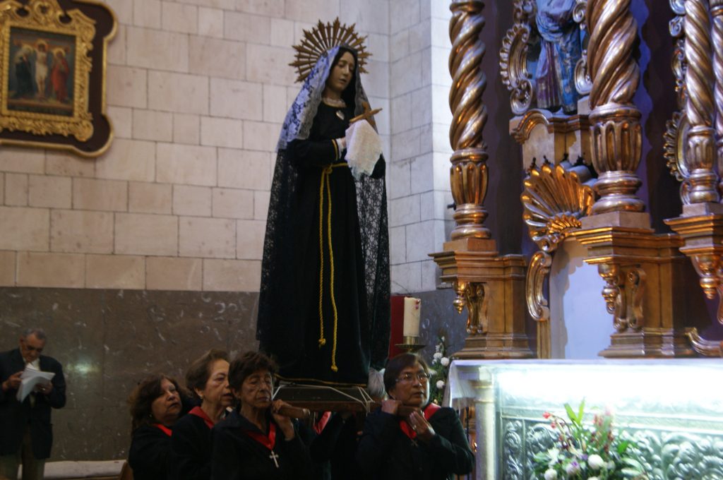 Previo al Domingo de Resurrección, decenas de feligreses encabezados por el obispo emérito de Saltillo, Francisco Villalobos, y el párroco de la Catedral de Santiago, Plácido Castro Zamora, se reunieron para recordar de manera simbólica el «Calvario de María», que representa el retorno de la Virgen de Los Dolores al Monte Calvario donde Jesús murió luego de la crucifixión.