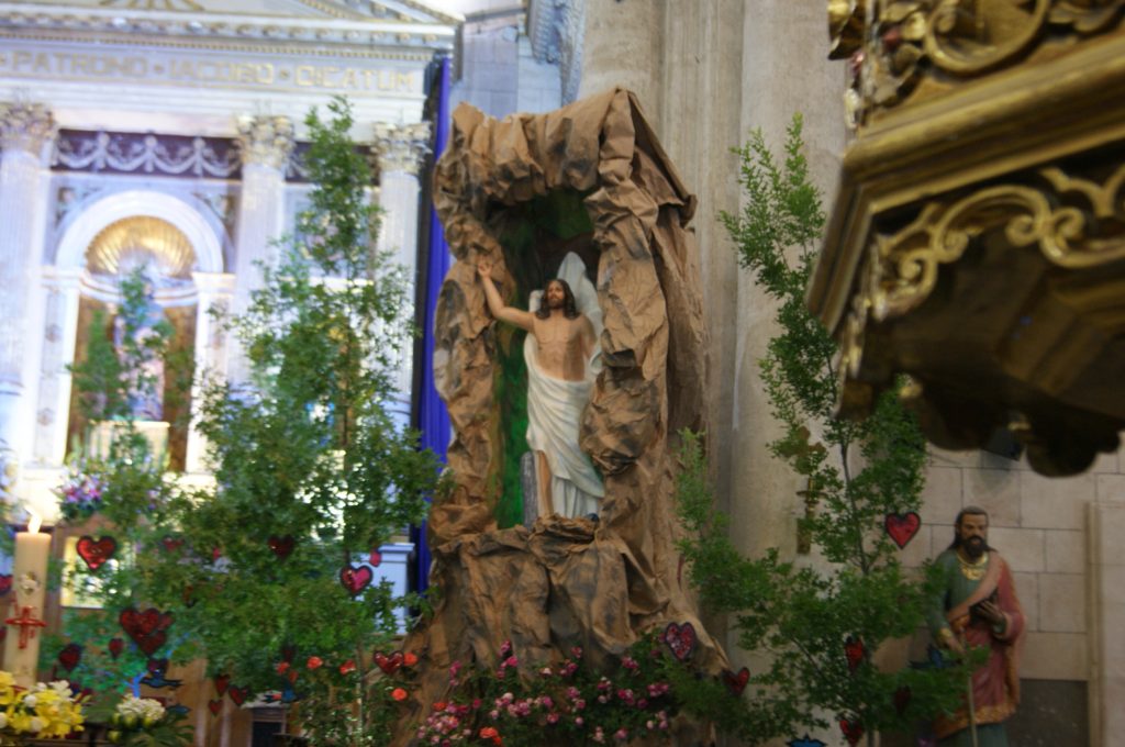 Con una emotiva misa en la Catedral de Santiago y ante un colorido altar, cientos de fieles celebraron el «Domingo de Resurrección», fecha en la que se conmemora, según la tradición cristiana, el regreso a la vida de Jesucristo al tercer día de haber sido crucificado.