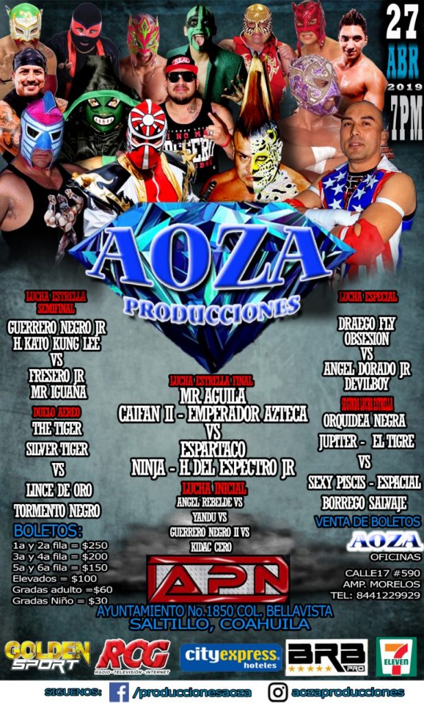 Mr. Águila, Caifán Segundo, Ninja, Ángel Dorado Jr. y Emperador Azteca, son miembros del cartel de estrellas luchísticas que medirán fuerza y poderío en este encuentro que contará con convivencia para los infantes y más sorpresas.