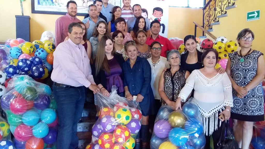 En representación de las personas que trabajan en los siete departamentos que conforman esta secretaría, Tomas Gutiérrez hizo la entrega simbólica de 1 mil 200 pelotas que se recolectaron gracias a la participación de 50 funcionarios aproximadamente.