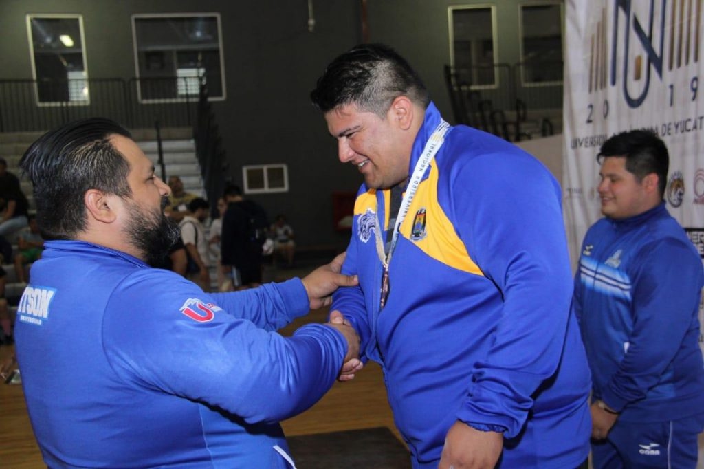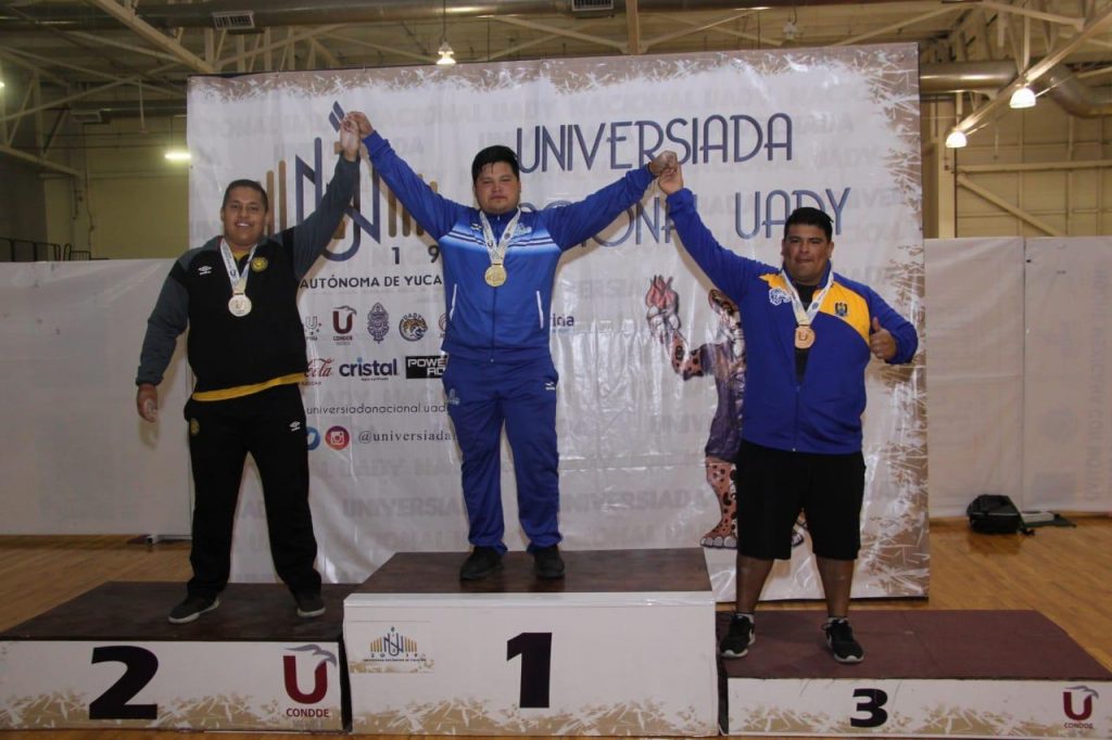 En la edición 22 de la Universiada Nacional, que se celebra en las instalaciones de la Universidad Autónoma de Yucatán desde el 30 de abril hasta el 17 de mayo, los estudiantes deportistas que representan a la Universidad Autónoma de Coahuila (UA de C), continúan cosechando medallas para esta casa de estudios. Tal es el caso de de Rubén Rodríguez Alcalá, quien subió al podio en la disciplina de Halterofilia, al ganar la medalla de bronce en la categoría de más de 106 kilogramos.
