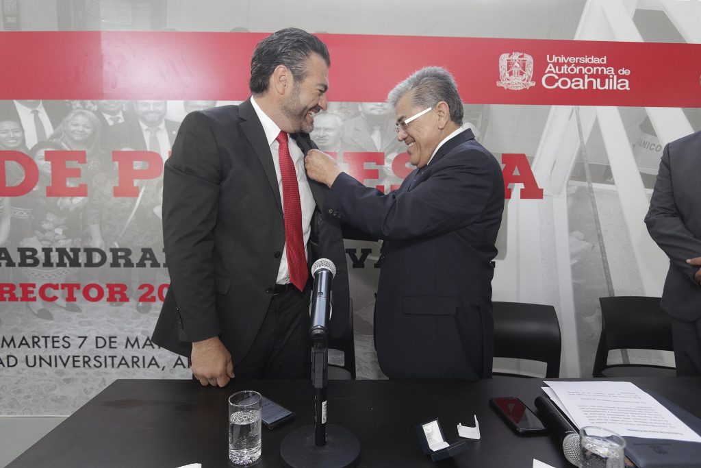 El Rector, le tomó protesta al director, acompañado del secretario general, Miguel ángel Rodríguez Calderón, y se le entregó un pin como símbolo de identidad institucional.
