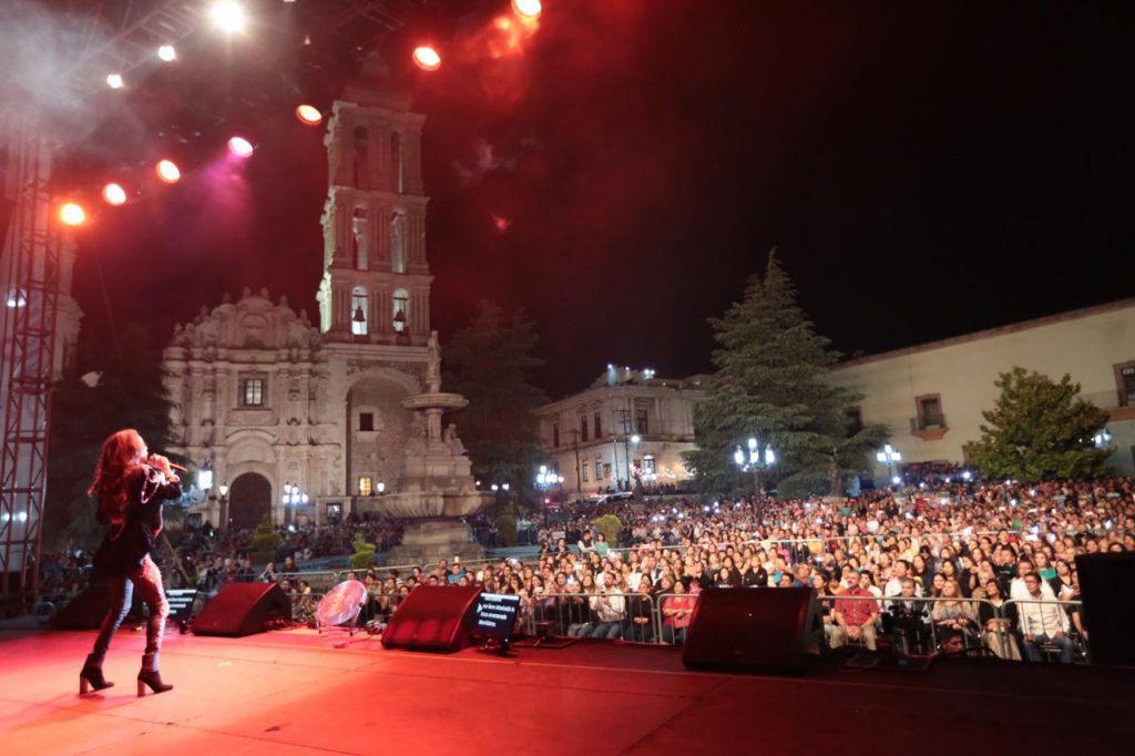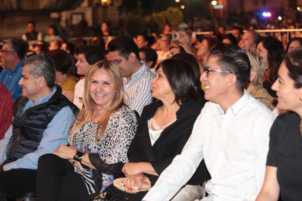 La Plaza de Armas de esta ciudad fue el escenario perfecto donde las mamás corearon a una voz las baladas de la famosa solista y ex integrante del grupo Timbiriche, que abrió su espectáculo con el tema “Desvísteme”, y con el que aprovechó para saludar y felicitar a las miles de mamás festejadas que se dieron cita a este evento acompañadas de sus amigas y familiares.