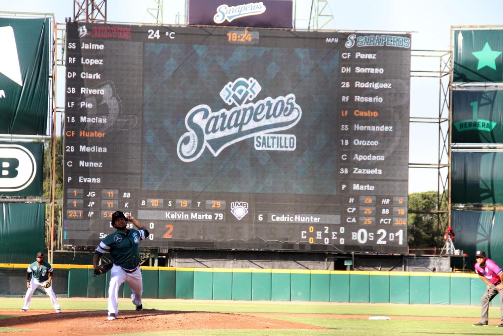 El abridor de Saraperos, Kelvin Marte regresó en la sexta para dominar a Félix Pie con rola al campo corto, ponchó a Brandon Macías y se fue del juego tras recibir hit de Cedric Hunter, pero con justo merecimiento se llevó la victoria tras 5.2 entradas superando en el duelo al derrotado Bryan Evans.