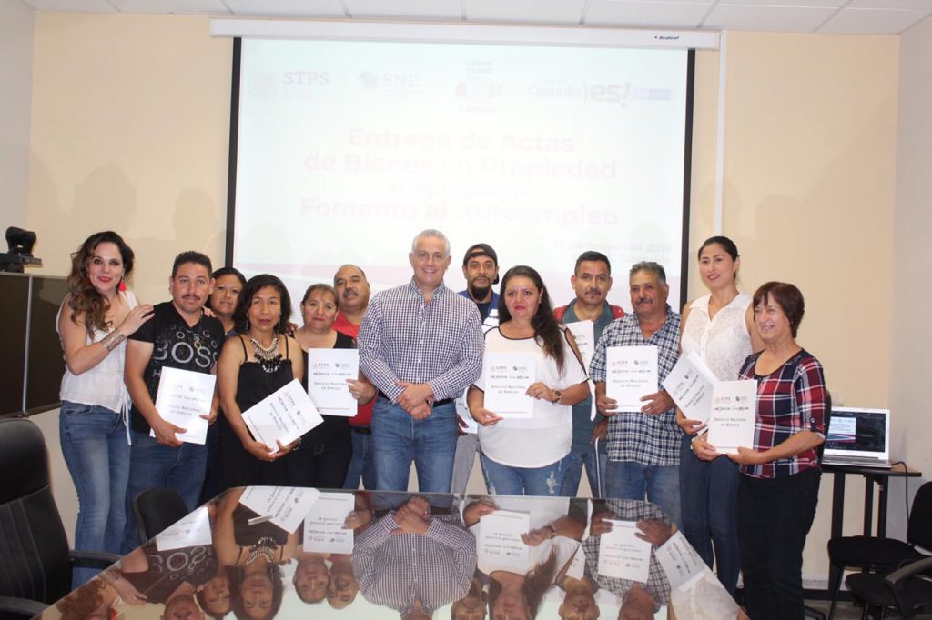 El Secretario del Trabajo de Coahuila, Román Alberto Cepeda, a nombre del gobernador Miguel Ángel Riquelme Solís, y en coordinación con el Servicio Nacional del Empleo (SNE), realizó la entrega de Bienes en Propiedad.