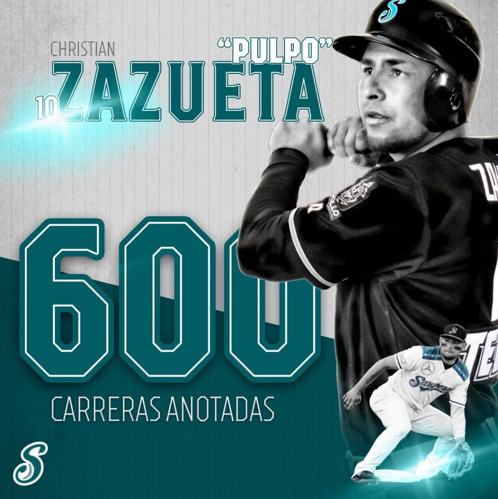 Esa carrera 11 del juego en los spikes de Christian Zazueta significó su carrera 600 en Liga Mexicana de Béisbol, en la novena entrada, producción de Manny Rodríguez.