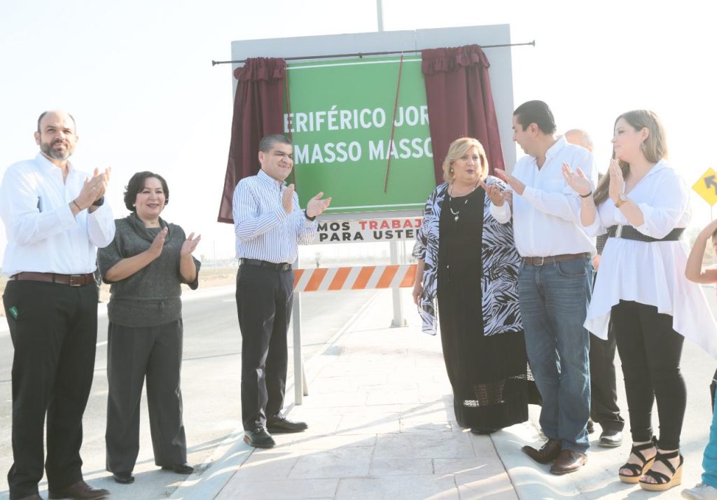 “Este periférico entra en servicio para las y los coahuilenses, además inmortaliza el nombre de don Jorge Masso Masso”, dijo Riquelme Solís.