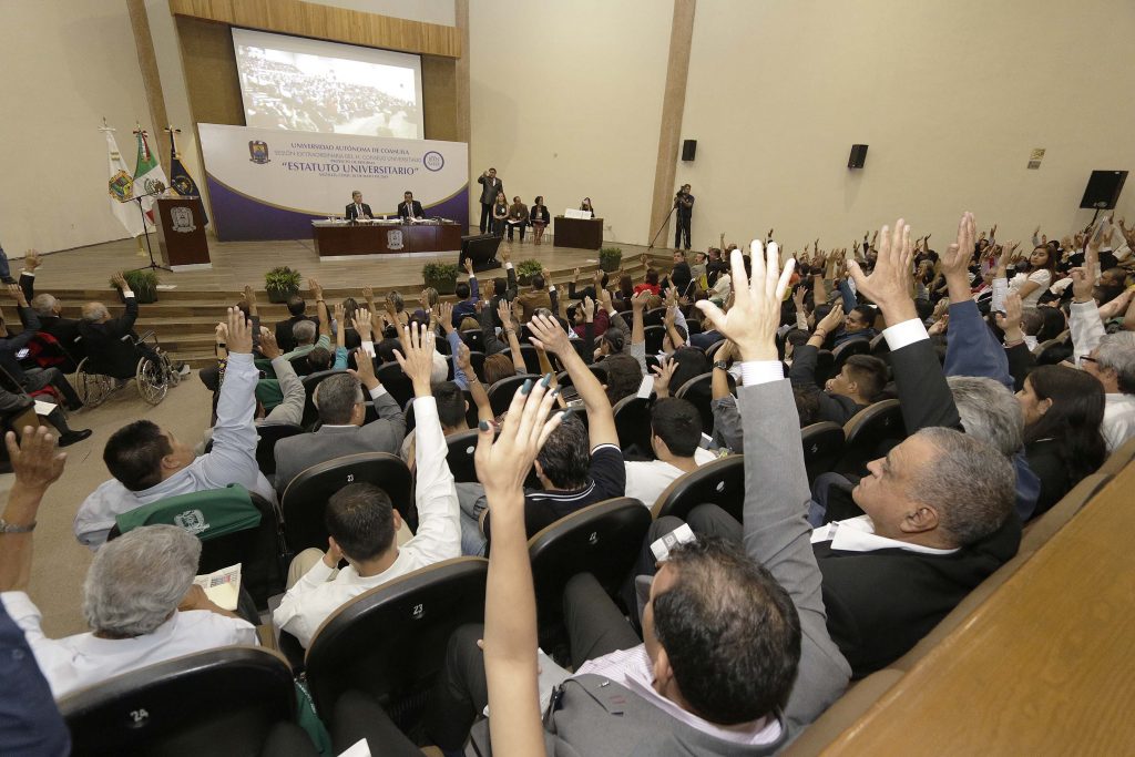 Como parte de las propuestas que el rector Salvador Hernández Vélez hizo en su campaña ante la comunidad de la Universidad Autónoma de Coahuila, como un hecho histórico fue aprobado por unanimidad, el proyecto de reforma al Estatuto Universitario, mismo que será sometido a plebiscito entre la comunidad de la UA de C el próximo 23 de mayo.