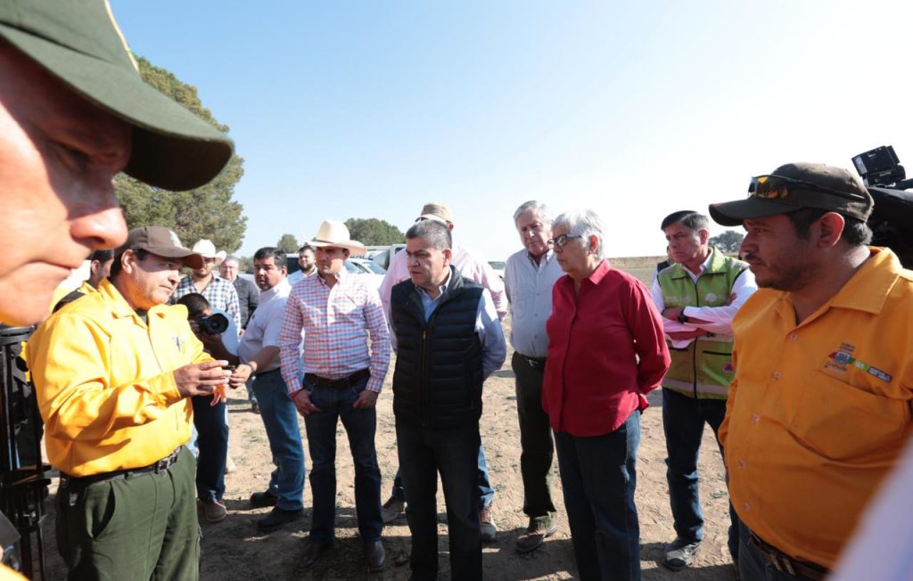 Riquelme Solís platicó con personal de Protección Civil así como con brigadistas, a quienes les reconoció el trabajo y la valentía con que diariamente enfrentan esta peligrosa y lamentable situación.