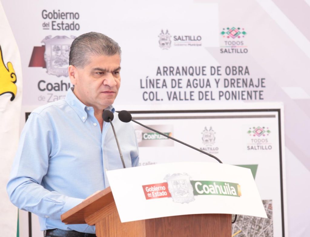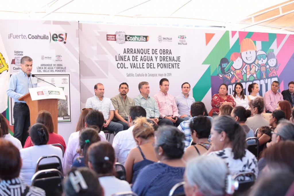 Con una inversión de más de 4 millones de pesos, el gobernador Miguel Ángel Riquelme Solís, acompañado por Manolo Jiménez Salinas, Presidente Municipal de Saltillo, dio el banderazo de inicio de obras de construcción de la línea de agua y drenaje en la Colonia Valle del Poniente.