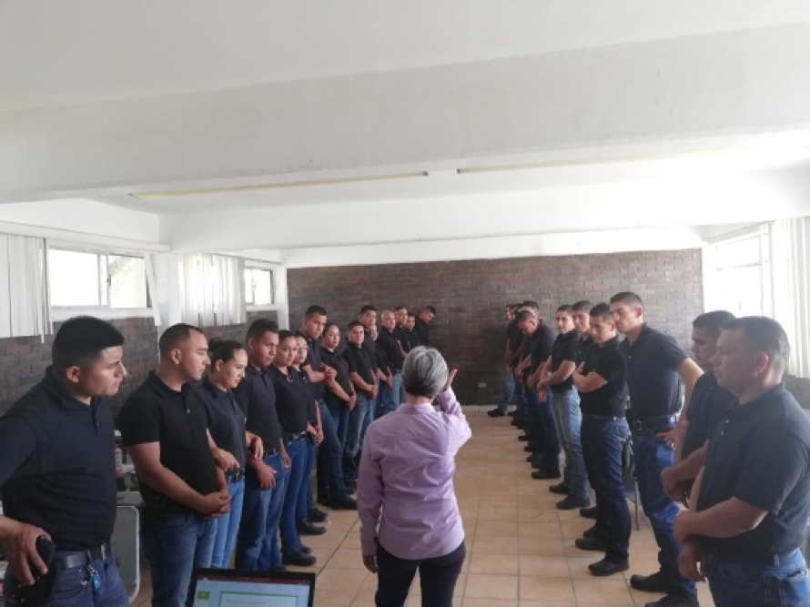 Clementina Aguilera, del área de Psicología del CJEM Torreón, fue la encargada de brindar la capacitación a los futuros policías.
