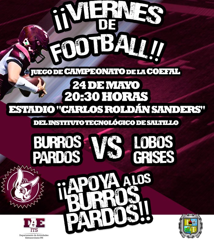 Todo está listo para la final de la Conferencia Estudiantil de Futbol Americano de la Laguna (Coefal), a disputarse entre los Lobos Grises de la Universidad Autónoma de Durango (UAD) y los Burros Pardos del Tecnológico de Saltillo, este viernes a las 8:30 de la noche en el Estadio Carlos Roldán Sanders del complejo educativo local.