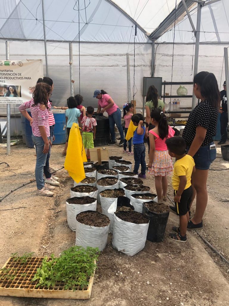 Dentro de las acciones dirigidas a niñas y niños de la comunidad de Pueblo Insurgentes, en esta ciudad, se llevó a cabo en el invernadero comunitario “La Cabañita” un recorrido para que conocieran las instalaciones así como los procesos que se realizan en el mismo.