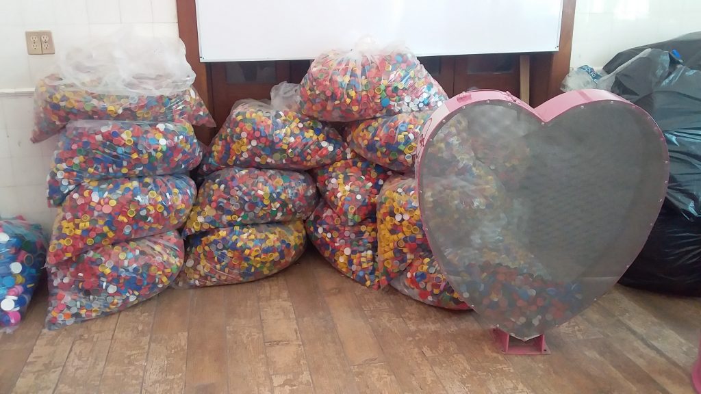 Esta campaña consiste en la recolección de taparroscas, mismas que son intercambiadas en una empresa de materiales reciclables a cambio de dinero, con el que se pagan tratamientos, traslados, y medicamentos para personas con cáncer.