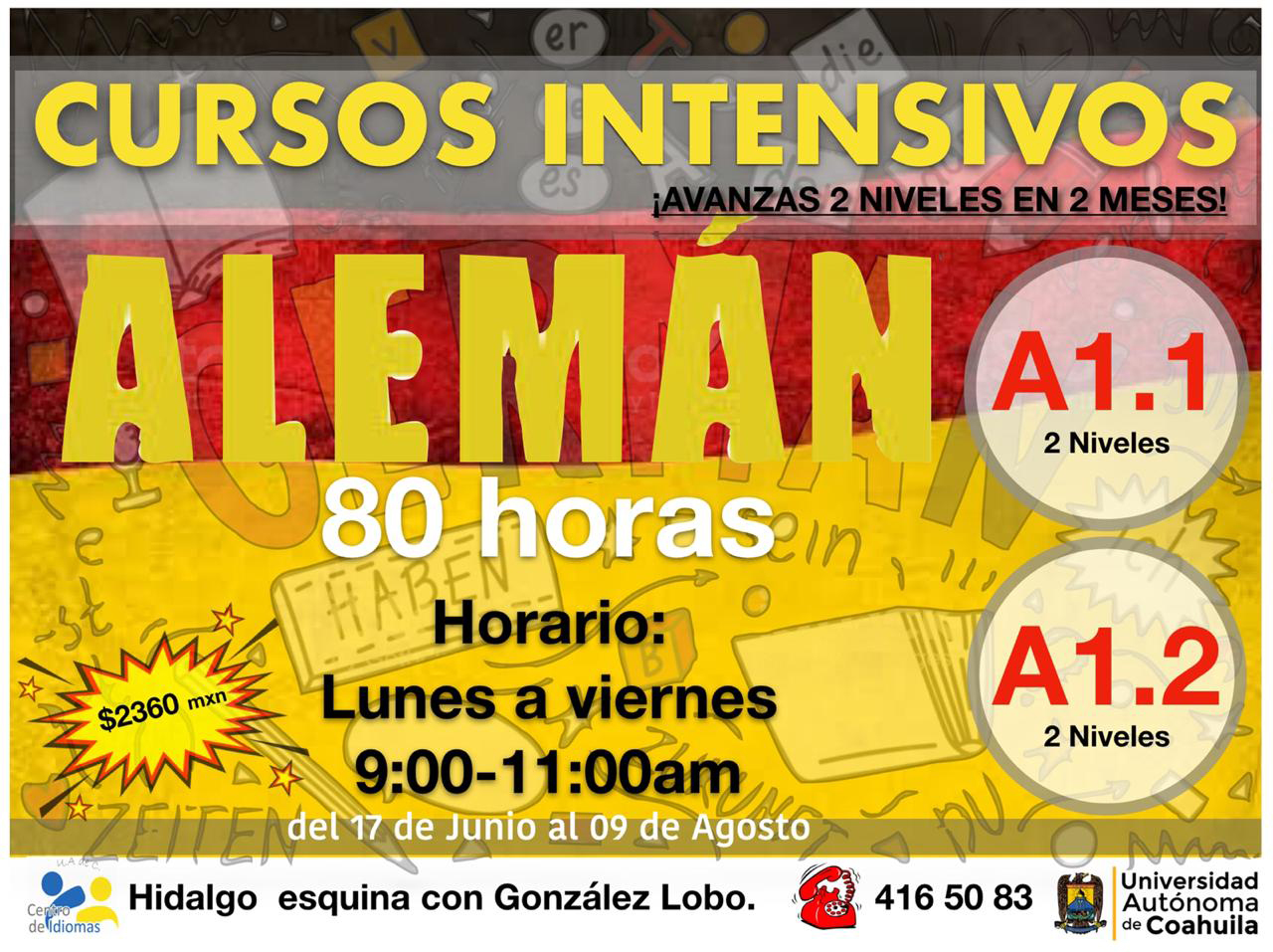 Los cursos para otros idiomas como alemán, francés e italiano tienen un costo de mil 180 pesos y para egresados de la UA de C con credencial del PSE 990 pesos, se impartirá dos días a la semana de 19:00 a 21:30 horas y el sabatino de 09:00 a 14:00 de la tarde, el horario puede variar según el nivel en el que se encuentren.