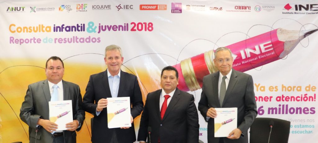 Este jueves, el Instituto Nacional Electoral, a través de la Junta Local Ejecutiva en Coahuila, llevó a cabo la entrega de los resultados de la Consulta Infantil y Juvenil 2018, que constituye el octavo ejercicio de este tipo que el INE realiza desde 1997, con el objetivo de que la niñez y la juventud cuenten con un espacio para expresarse libremente y pongan en práctica su derecho a participar en la vida democrática