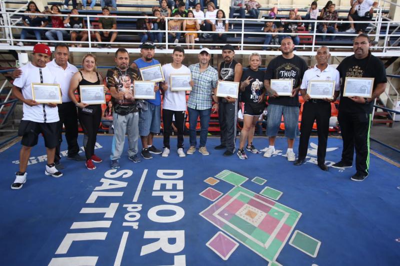 El director del Instituto Municipal del Deporte en Saltillo, Antonio Cepeda Licón, entregó reconocimientos a los boxeadores finalistas del elenco que incluyó la cartelera de este domingo, con un total de 10 combates en las ramas varonil y femenil.