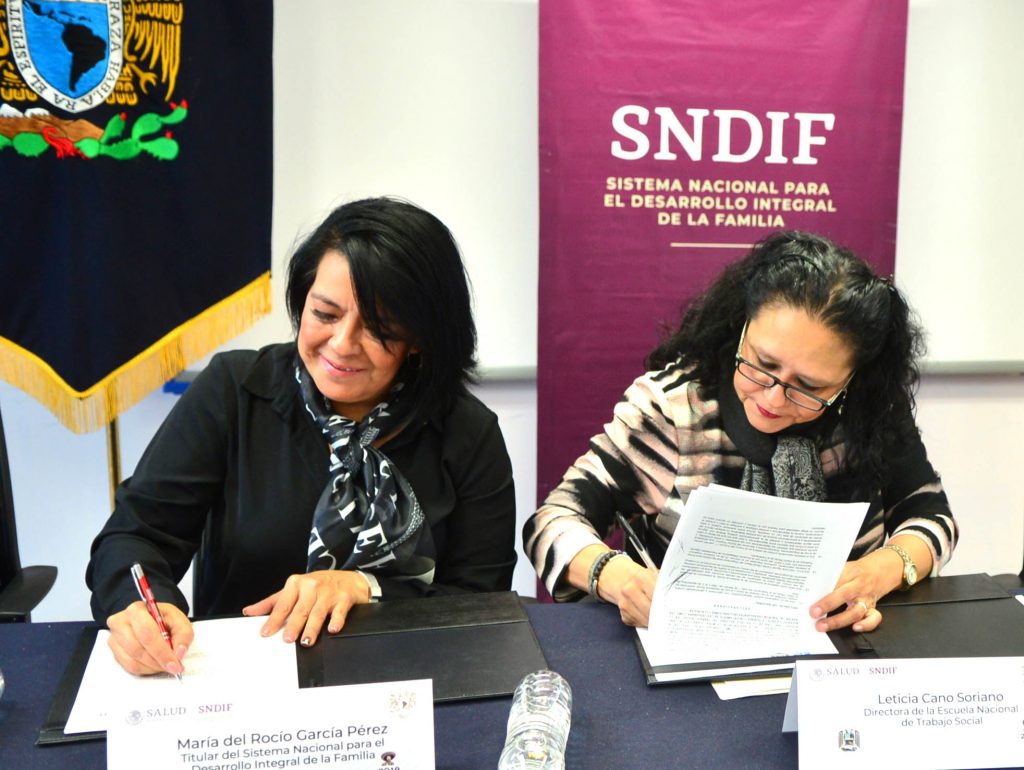 Ciudad de México.- La Escuela Nacional de Trabajo Social (ENTS) de la UNAM y el Sistema Nacional para el Desarrollo Integral de la Familia (SNDIF) firmaron un convenio de colaboración para que la entidad universitaria capacite a personal del organismo público.