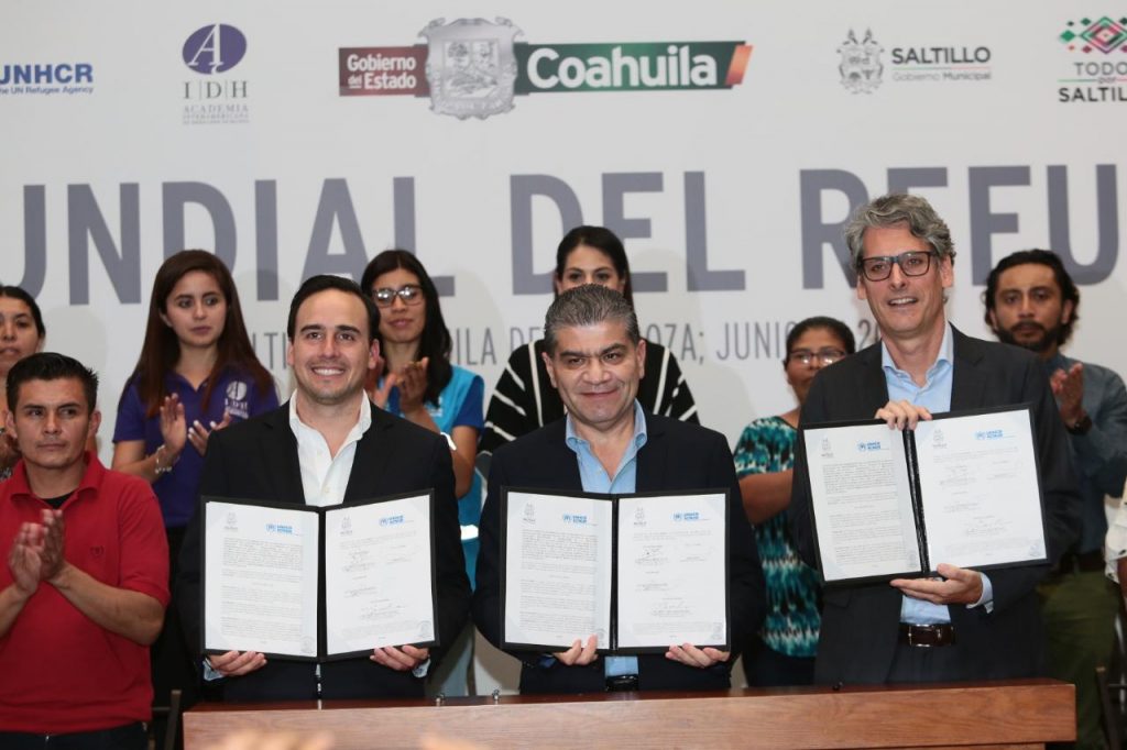 Lo anterior durante el evento realizado con motivo del Día Mundial de los Refugiados, en el que el gobernador fungió como testigo de honor en la firma del convenio en materia de inclusión y respeto a los derechos humanos, entre el Municipio de Saltillo y la Oficina del Alto Comisionado de las Naciones Unidas para los Refugiados (ACNUR), cuyo representante señaló que el “modelo Coahuila” es un ejemplo mundial.