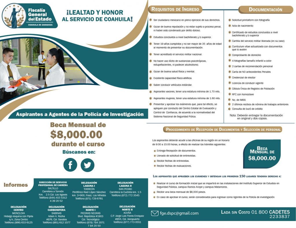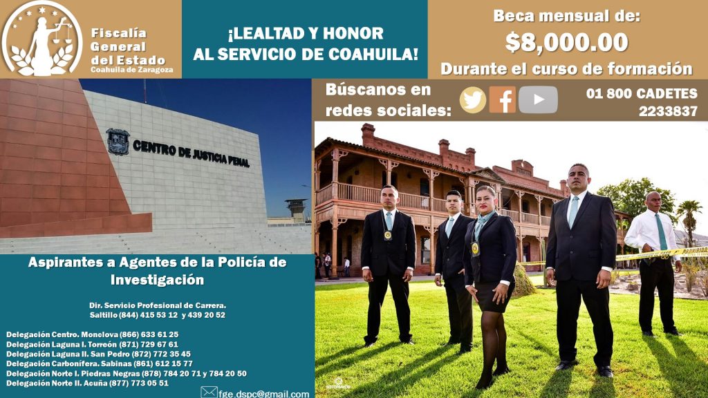 En ambos casos, los aspirantes deberán aprobar los exámenes que marca la ley, incluidos los exámenes de control y confianza, para mayor información favor de comunicarse a la Dirección de Servicio Profesional de Carrera (844) 415 53 12 y 439 20 52. (EL HERALDO)