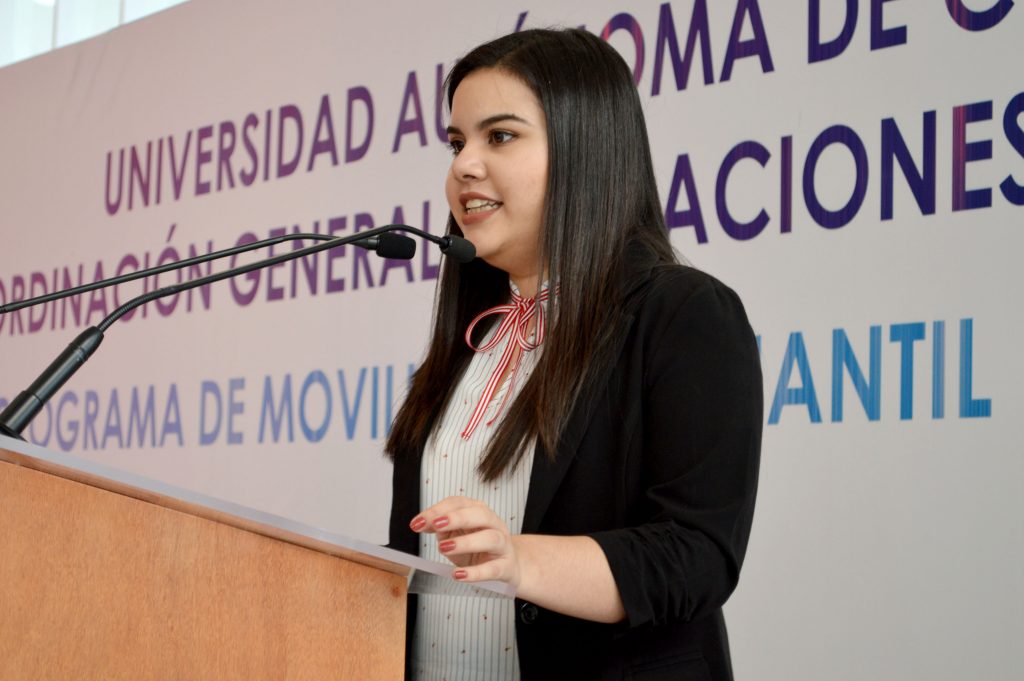 El mensaje de los 57 alumnos estuvo a cargo de las alumnas Daniela González Santos de la Facultad de Ciencias Químicas de la Unidad Saltillo y que viajará a Corea del Sur, Silvia Janeth Ramos Santana de la Facultad de Ingeniería Civil de la Unidad Torreón, que realizará su estancia en Alemania y Ana Paula Esqueda Rivas de la Facultad de Contaduría y Administración de la Unidad Norte que también viajará a Alemania.