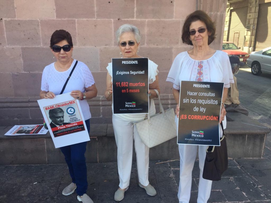 La plaza de la Nueva Tlaxcala, albergó este domingo a decenas de personas que se manifestaron pacíficamente en contra del Gobierno Federal de Andrés Manuel López Obrador, exponiendo sus inconformidades y dando a conocer algunas exigencias.