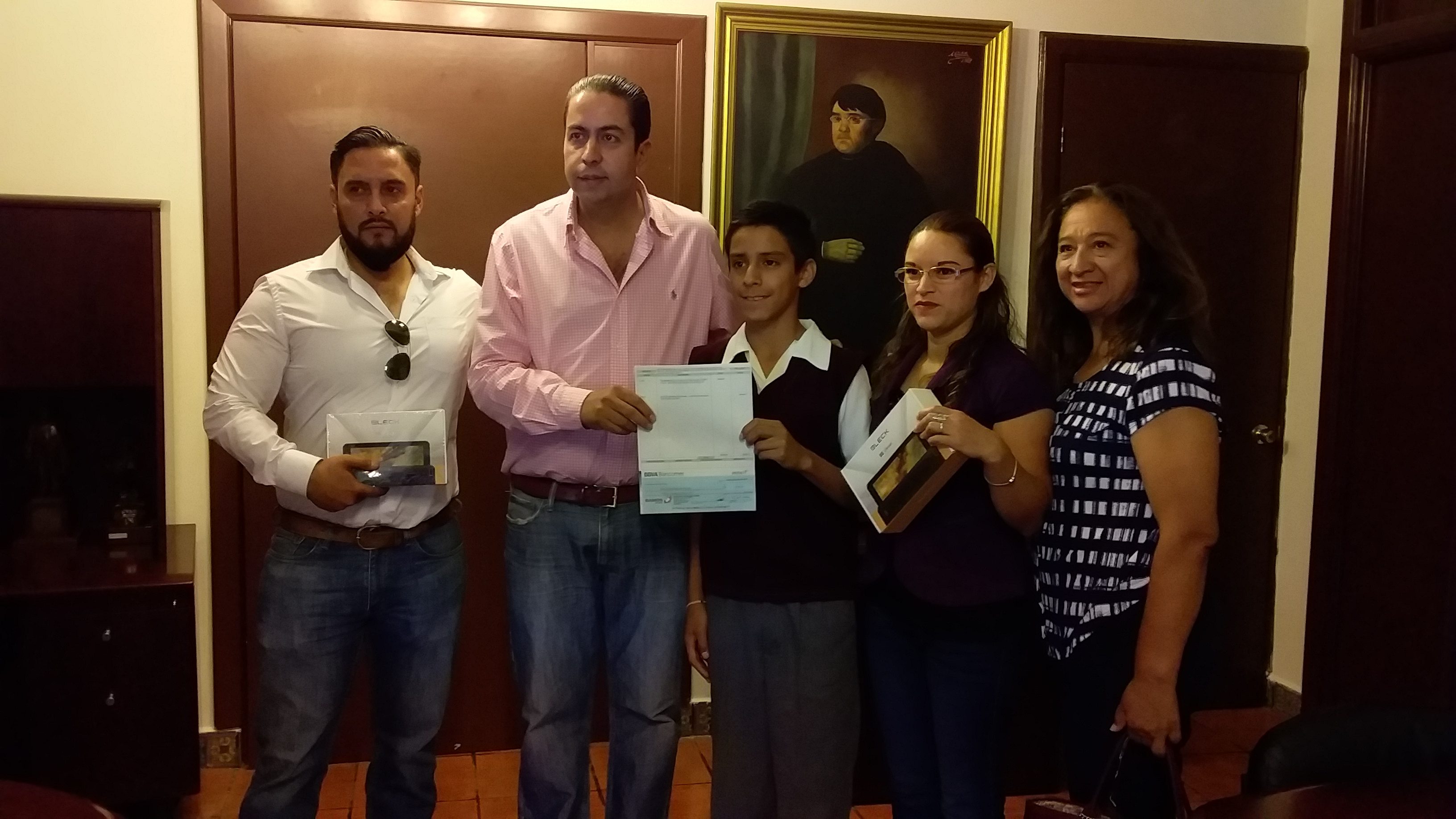 Este estudiante de sexto año de la Lorenzo Martínez, recibió un apoyo económico por parte del Ayuntamiento, además de recibir también una tableta electrónica la cual le servirá para realizar sus proyectos y tareas en la Secundaria Técnica de Ramos Arizpe, escuela a la que se inscribirá para el próximo ciclo escolar