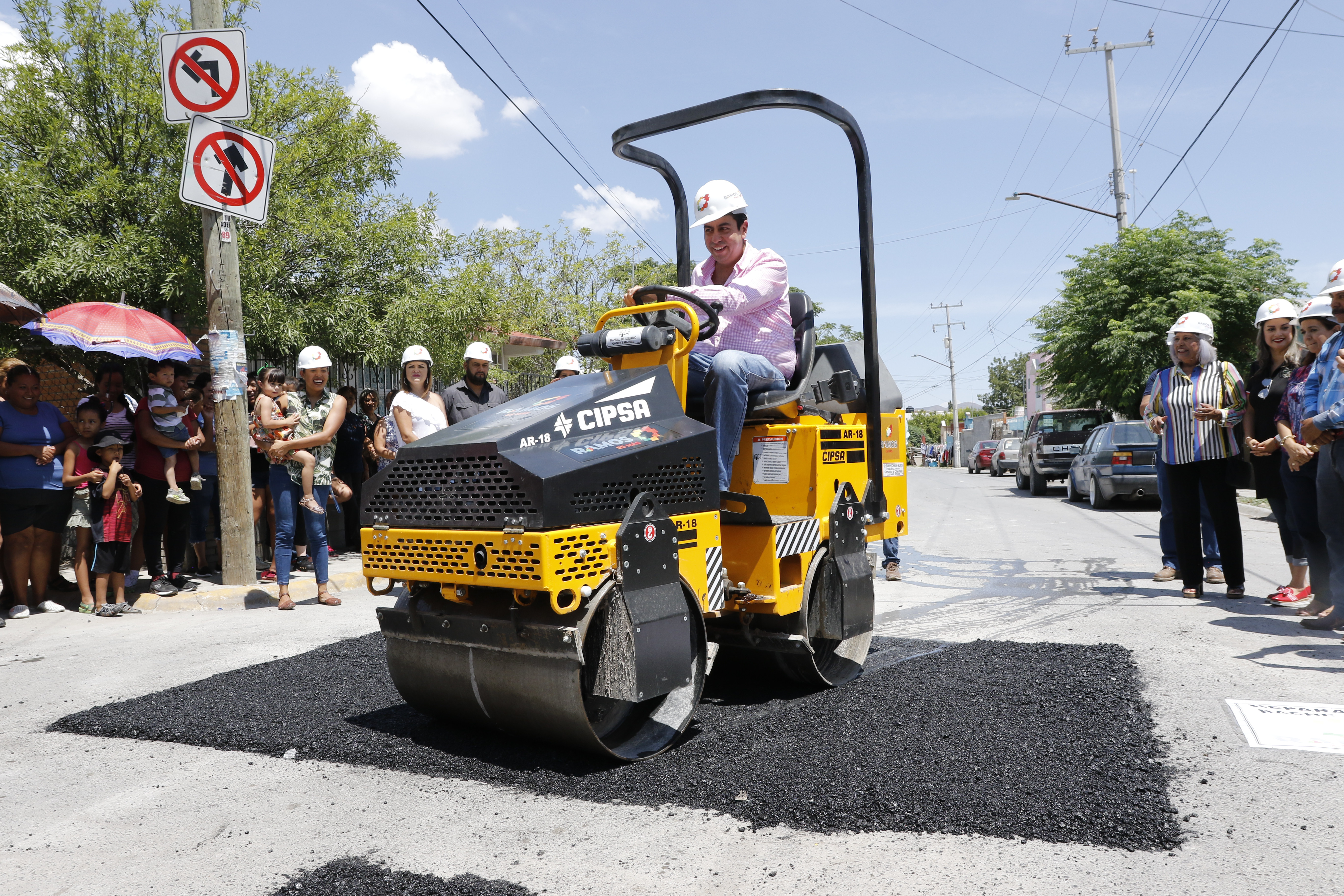 En la calle Avenida de los Arroyos esquina con Arrollo Seco de la colonia Manantiales del Valle, este miércoles se dio cita el alcalde de Ramos Arizpe, Chema Morales, para llevar a cabo la acción de bacheo número 1,000 de su administración.