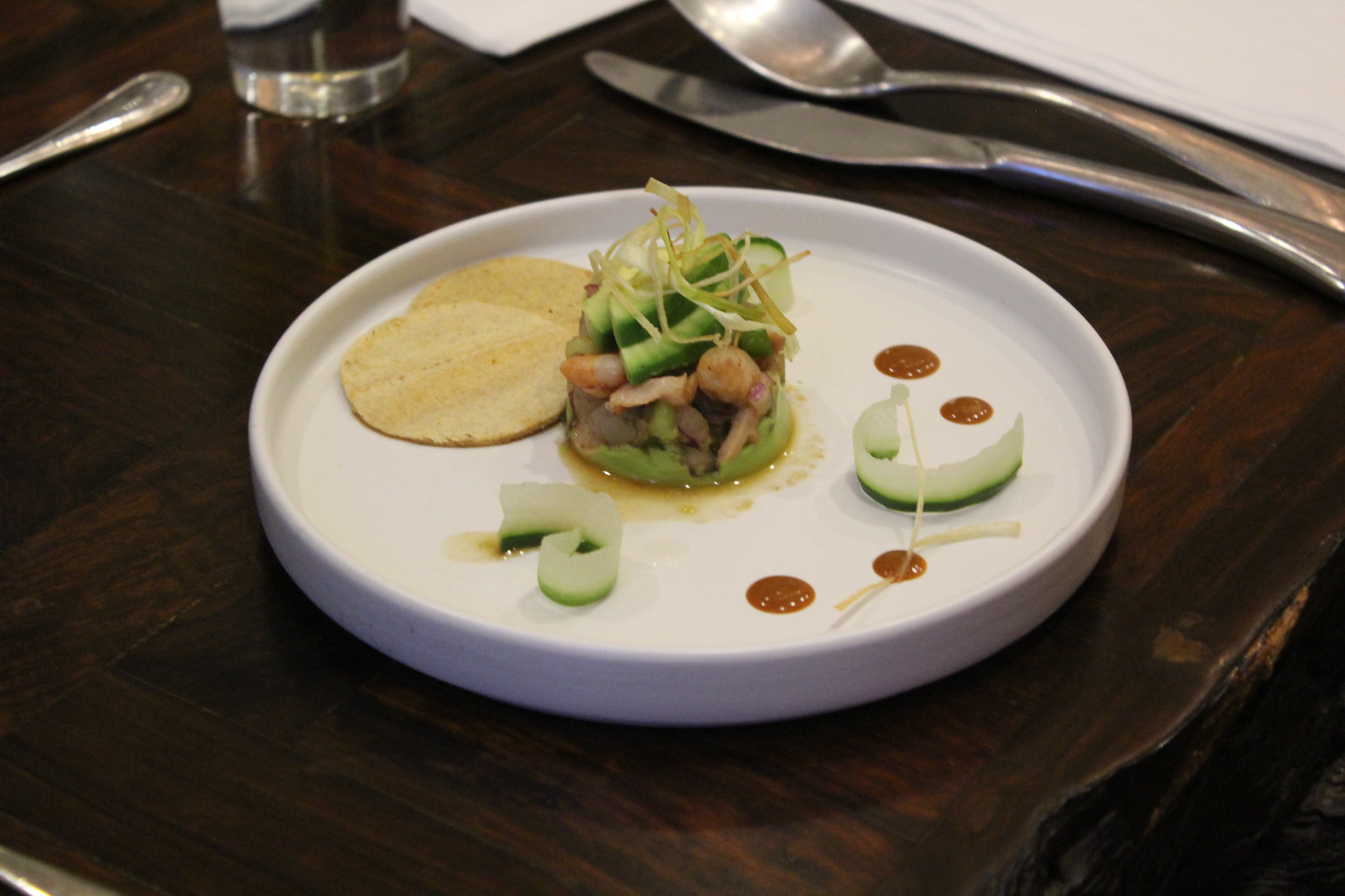 Posteriormente se dio a conocer el primer tiempo: Paté de Atún Ahumado, acompañado de Vino Blanco Chardonay de Casa Madero; en el segundo tiempo se sirvió Ceviche Mitotero  acompañado de Cerveza Huérfana Blonde Ale; el tercer tiempo: mini tostada de salpicón de atún ahumado acompañado de Vino Rosado de San Juan de la Vaquería; el cuarto tiempo: Caldo de Queso acompañado de Vino Rosado Bodega Los Cedros; el quinto tiempo: Enchiladas del Suelo acompañada de  Cerveza Huérfana American Wheat; y por último el sexto tiempo: Natilla Mamanina con Vino Tinto San Juan de la Vaquería.