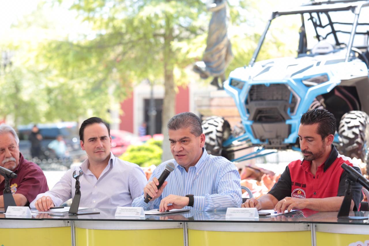 El gobernador Miguel Riquelme destacó la importancia de los dos eventos, por la exhibición y el recorrido por el semidesierto que detonará el turismo de aventura y mostrará la biodiversidad de Coahuila y la seguridad.