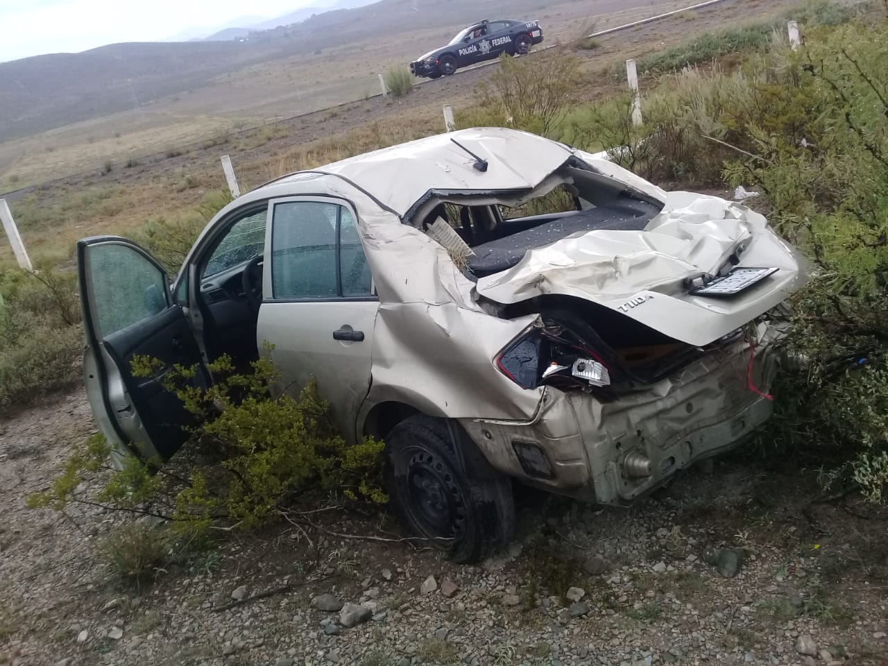 Salieron de la carpeta asfáltica para después dar varias volteretas hasta terminar el vehículo en posición normal.