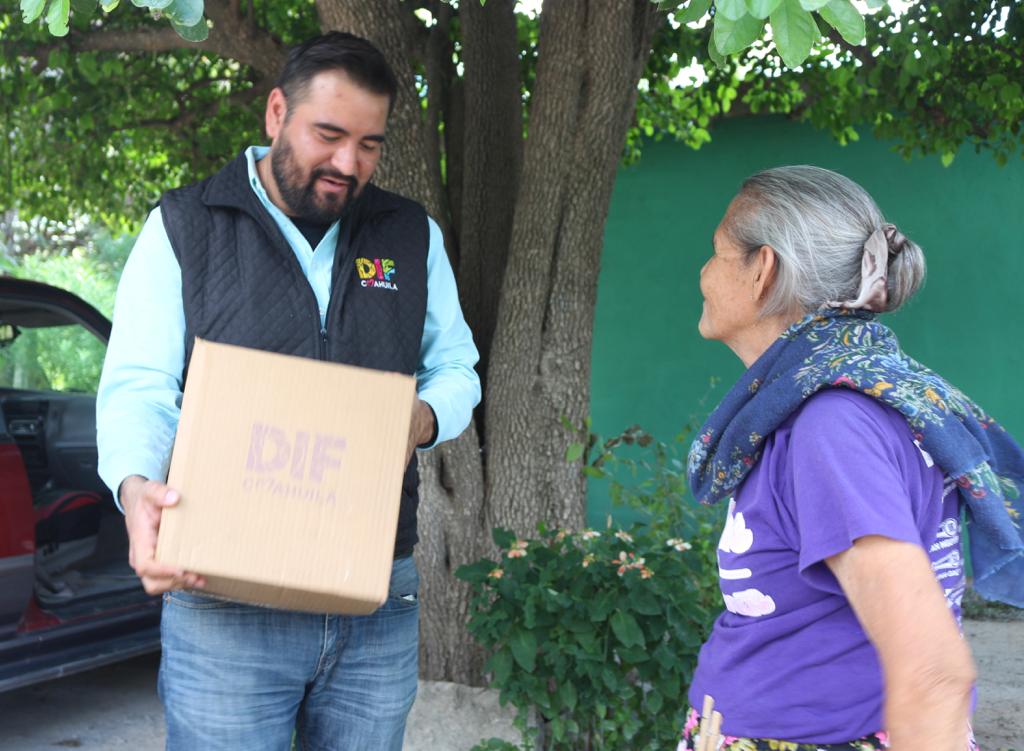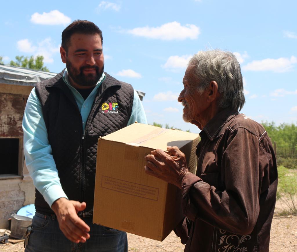 Guerrero, Coahuila.- Con el objetivo de conocer de cerca sus necesidades, a nombre de la Presidenta Honoraria del DIF Coahuila, la señora Marcela Gorgón, personas residentes del Municipio de Guerrero incorporadas al Programa Adultos Mayores en Abandono (AMA) recibieron la visita de Valente Eleazar Chávez Reyes, coordinador regional del Sistema para el Desarrollo Integral de la Familia, quien les hizo entrega de una despensa con productos nutricionales.