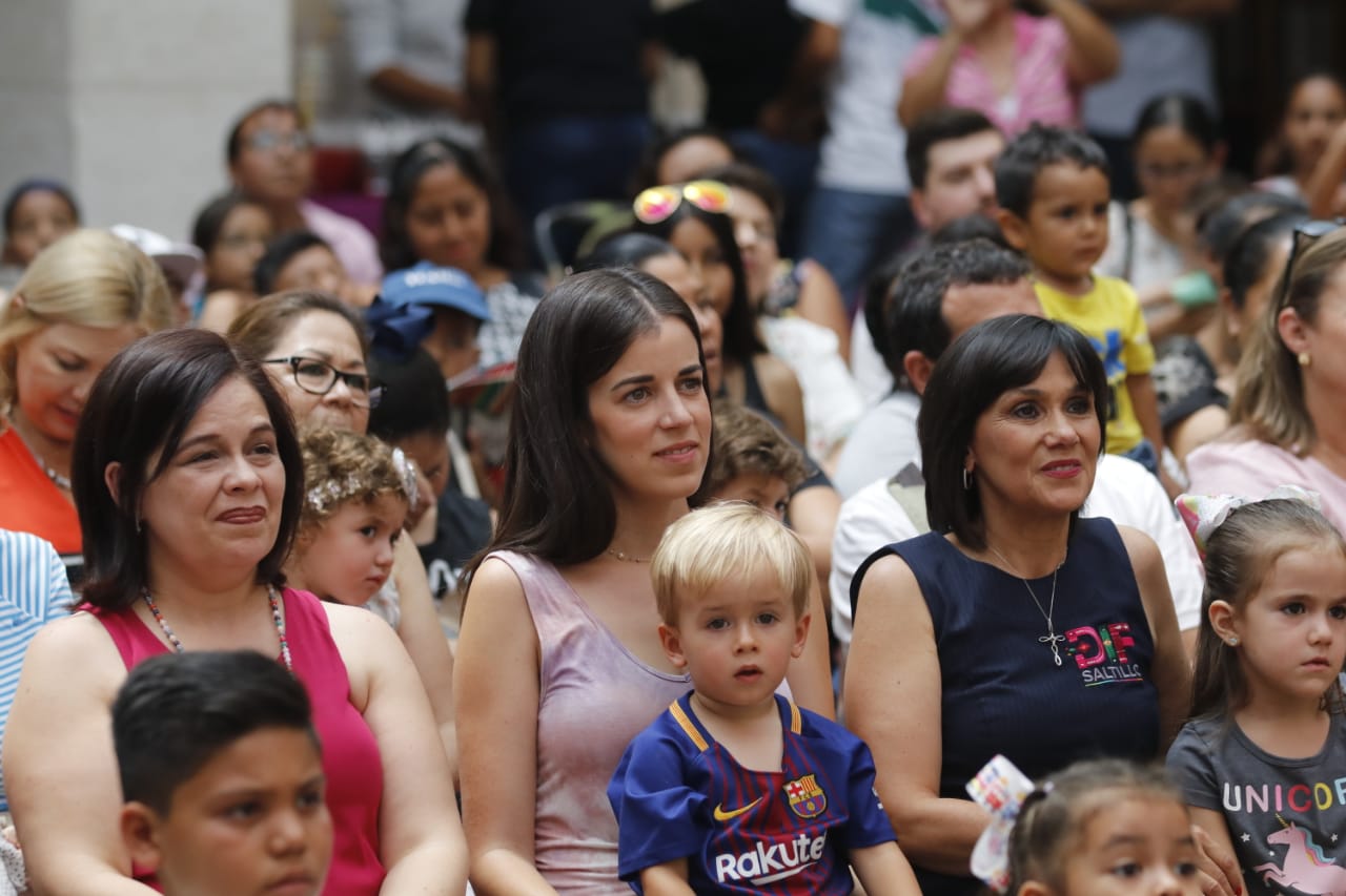 La presentación fue encabezada por la presidenta honoraria del DIF municipal, Liliana Salinas Valdés, quien estuvo acompañada por Paola Rodríguez López, esposa del alcalde Manolo Jiménez; y sus nietos Manolo, Santiago y Analía; además de Iván Márquez Morales, director del Instituto Municipal de Cultura.