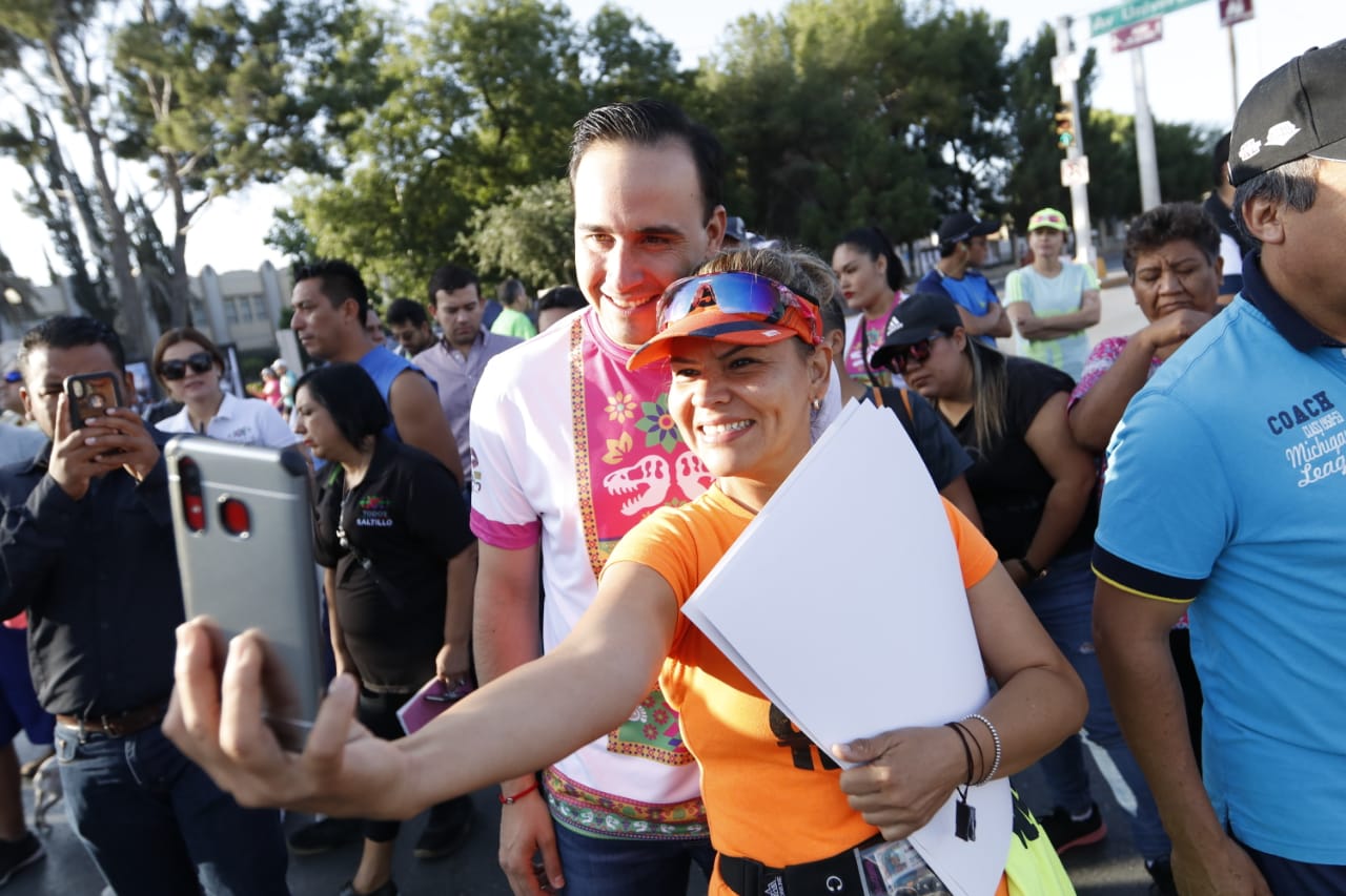 El alcalde Manolo Jiménez Salinas llevó a cabo el disparo de salida para los más de más de dos mil saltillenses que participaron en la carrera 5K y 10K para conmemorar el 442 aniversario de la ciudad.