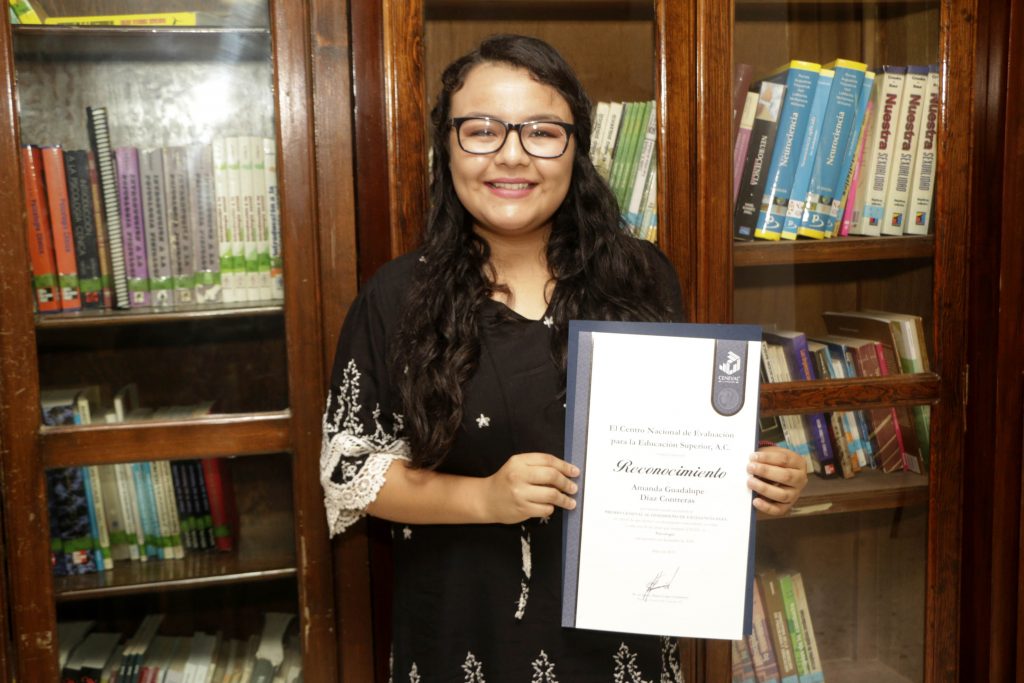 Esta alumna graduada de la Facultad de Psicología de la Universidad Autónoma de Coahuila, recibió el Premio Ceneval 2019 al Desempeño de Excelencia EGEL en el área de Psicología.