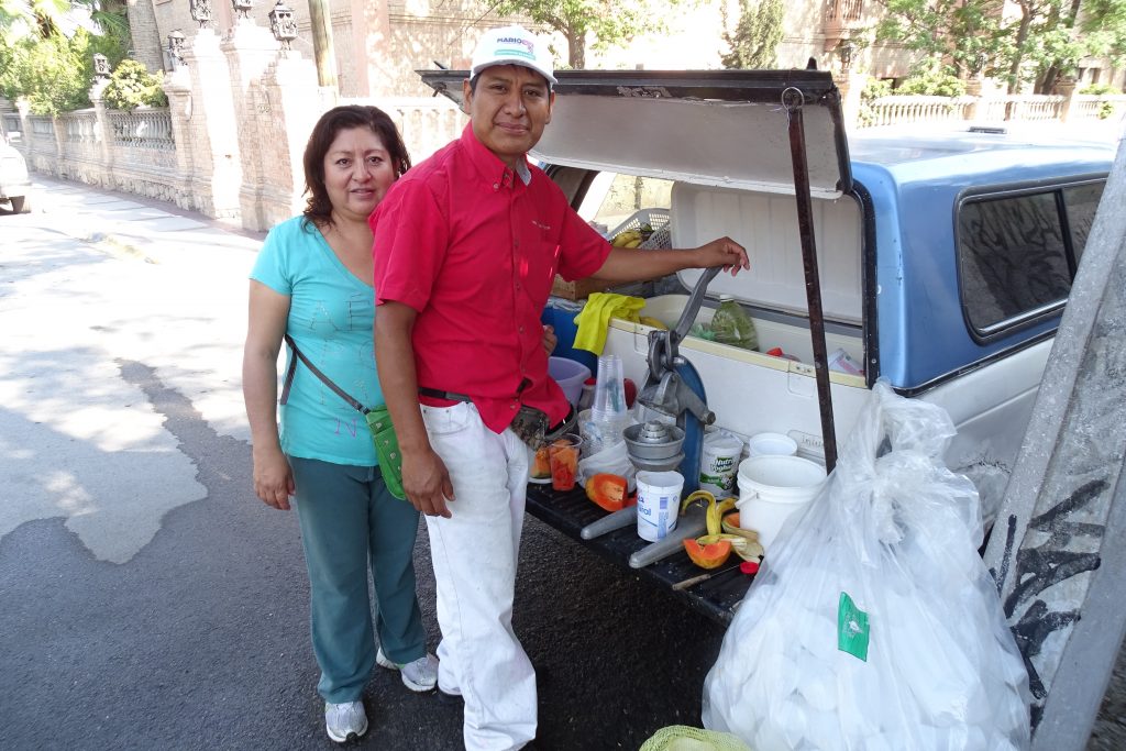 Este vendedor ya es toda una figura reconocida en el municipio, a diario cientos de personas acuden a su puesto móvil para comprar jugo recién exprimido así como fruta fresca de temporada.