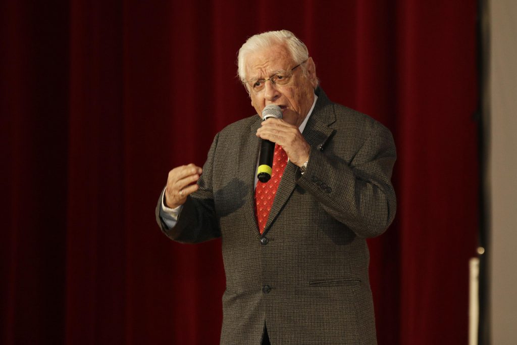 Durante la bienvenida, los nuevos daneses del ateneo Fuente escucharon la charla del Lic. Armando Fuentes Aguirre, destacado ateneísta que no sólo transitó las aulas como estudiante, sino que se convirtió en docente y posteriormente en director del plantel.
